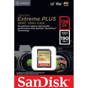 SDXC SANDISK 128GB EXTREME PLUS, 190/90MB/s, UHS-I, C10, U3, V30