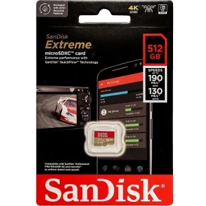 SDXC SANDISK MICRO 512GB EXTREME, 190/130MB/s, A2, UHS-I, U3, V30, C10, adapter