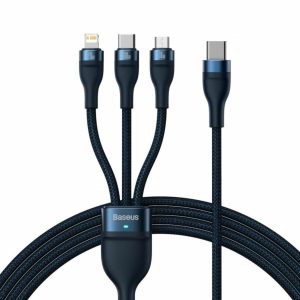 Baseus polnilni kabel USB 3v1 Lightning/ TipC/Mikro 3.5A svetlo/moder 1,1m