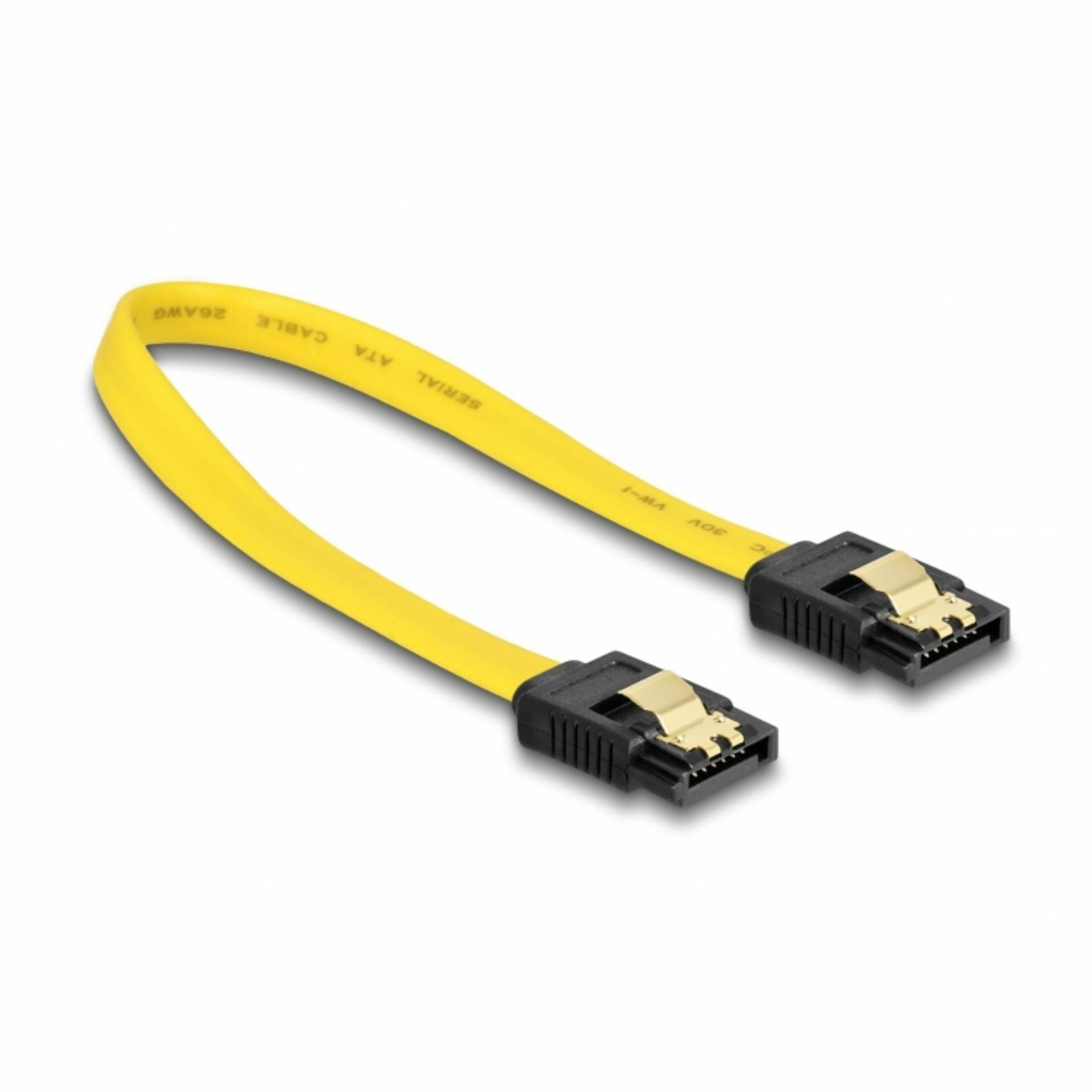 je visokokakovosten kabel za povezavo SATA naprav, kot so trdi diski, kontrolne kartice ali FLASH pomnilnik. Kabel zagotavlja zanesljivo povezavo s pozlačenimi kovinskimi sponkami na konektorjih, ki preprečujejo nepričakovano odklopitev. Podpira hitrost prenosa podatkov do 6 Gb/s, kar omogoča hitro in učinkovito komunikacijo med napravami. Kabel je povratno združljiv z različicami SATA 3 in SATA 1.5 Gb/s, zato je uporaben tudi za starejšo opremo. Dolžina kabla je približno 20 cm (brez priključkov), njegova barva pa rumena za lažjo identifikacijo. Izdelan je iz kabla 26 AWG, ki zagotavlja stabilno delovanje.