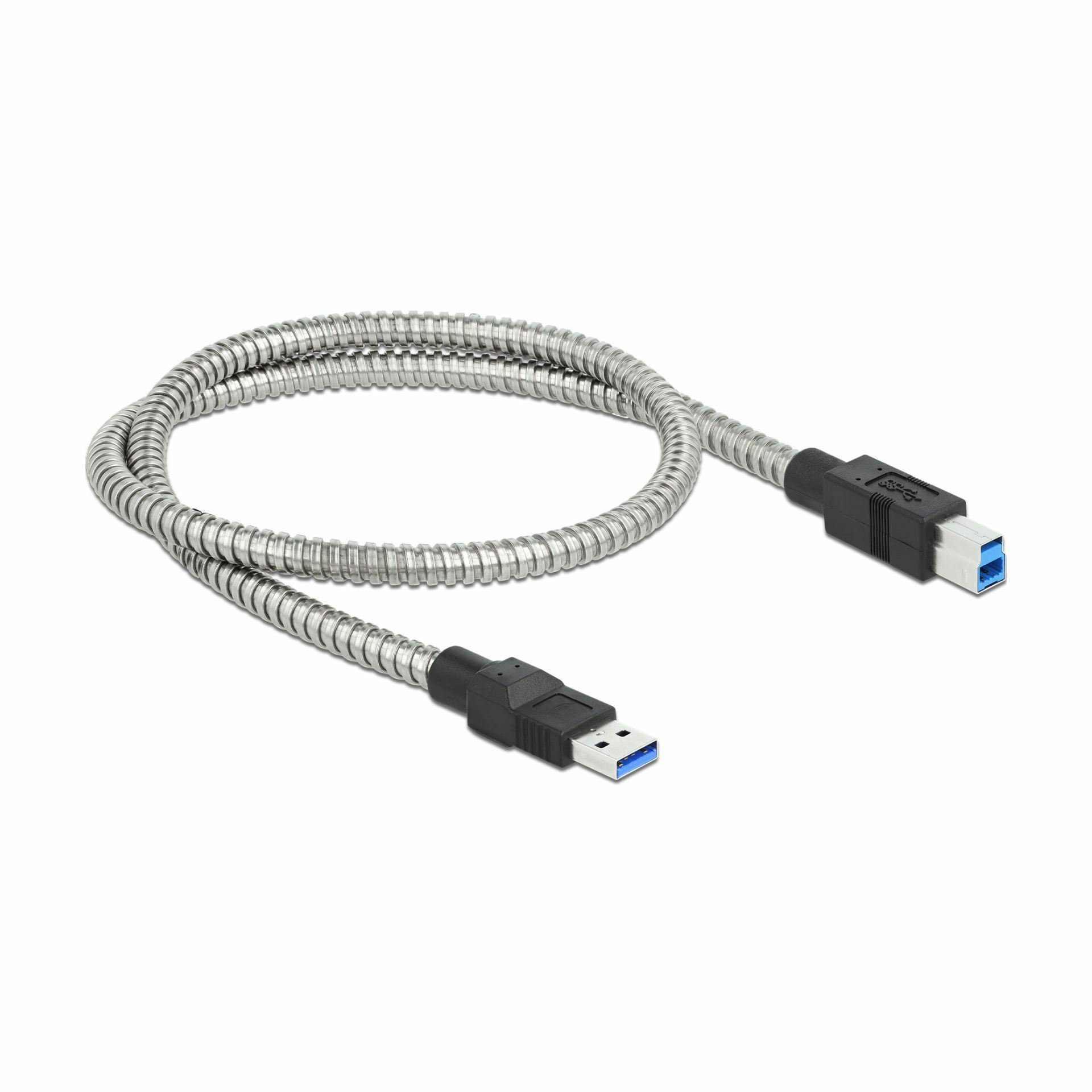 Delock 86777 je robusten USB 3.2 kabel s kovinskim ovojem, ki omogoča povezavo med napravo s priključkom USB TipB in osebnim ali prenosnim računalnikom. Kabel ima robusten kovinski ovoj in je zato zelo dobro zaščiten pred zunanjimi vplivi in poškodbami. Kljub kovinskemu plašču je kabel še vedno upogljiv.