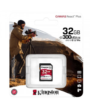 Kingstonova pomnilniška kartica Canvas React Plus SD je zasnovana z najnovejšimi standardi UHS-II za profesionalne ustvarjalce, saj zagotavlja hitrosti do 260 MB/s za zajem videoposnetkov v 4K in 8K ločljivosti ter brezhiben prenos s hitrostjo do 300 MB/s. Z oznakama U3 in V90 omogoča visokozmogljivo snemanje in hitre prenose. Idealna je za vrhunske fotoaparate in ustvarjanje vsebin.
