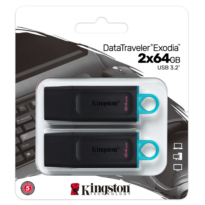 USB ključ uporablja USB 3.2 Gen 1 konektor za enostaven dostop do prenosnikov, namiznih računalnikov, monitorjev in drugih digitalnih naprav. DT Exodia omogoča hiter prenos in priročno shranjevanje dokumentov, glasbe, video posnetkov in še več. Zaradi praktične zasnove in je idealen za vsakodnevno uporabo v službi, doma, v šoli ali kjer koli potrebujete podatke. Serija DataTraveler Exodia je na voljo s kapacitetami do 256 GB in je podprta s petletno garancijo in Kingston zanesljivostjo.