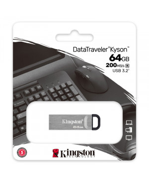KINGSTON DataTraveler Kyson USB ključek je kompakten, visoko zmogljiv USB ključek z USB 3.2 Gen 1 tipa A priključkom, z izjemnimi hitrostmi prenosa podatkov, kar omogoča hiter prenos datotek. Na voljo so različne kapacitete za shranljevanje fotografij, videoposnetkov, glasbe in druge vsebine na poti. Kovinsko ohišje brez pokrovčka vam prihrani težave pred izgubo pokrovčka.