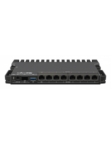Mikrotik RB5009UG+S+IN je visokozmogljiv usmerjevalnik, zasnovan za uporabo v naprednih domačih omrežjih in profesionalnih omrežjih, kjer sta zanesljivost in hitrost ključnega pomena. Naprava ima skupno 9 priključkov: 7x gigabitnih Ethernet priključkov, 1x 2.5G Ethernet priključek in 1x 10G SFP+ režo. Poganja ga štirijedrni procesor Marvell Armada 88F7040 s frekvenco 1,4 GHz, podprt z 1 GB DDR4 RAM-a, kar omogoča učinkovito obdelavo podatkov tudi pri večjih obremenitvah. Vsi priključki so povezani na zmogljiv switch-chip Marvell Amethyst, ki zagotavlja hitro in zanesljivo povezljivost. Naprava vključuje tudi polno velik USB 3.0 priključek za dodatne možnosti razširitve.